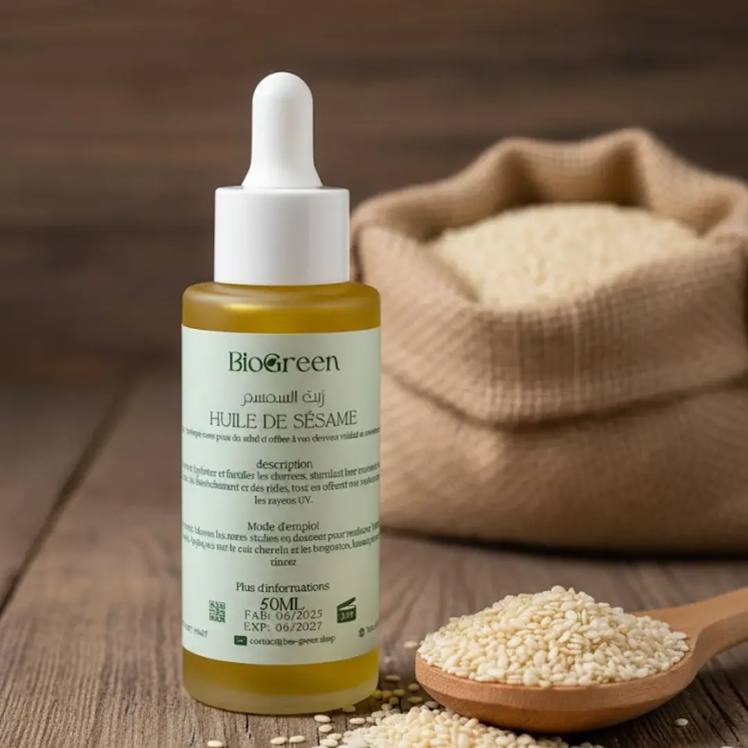 يُعرف زيت السمسم بكونه "إكسير العافية" لغناه الفريد بمضادات الأكسدة القوية (مثل السيسامول والسيسامين) وفيتامين E، والمعادن الأساسية. إنه سر الحيوية المتجددة والجمال الطبيعي.
