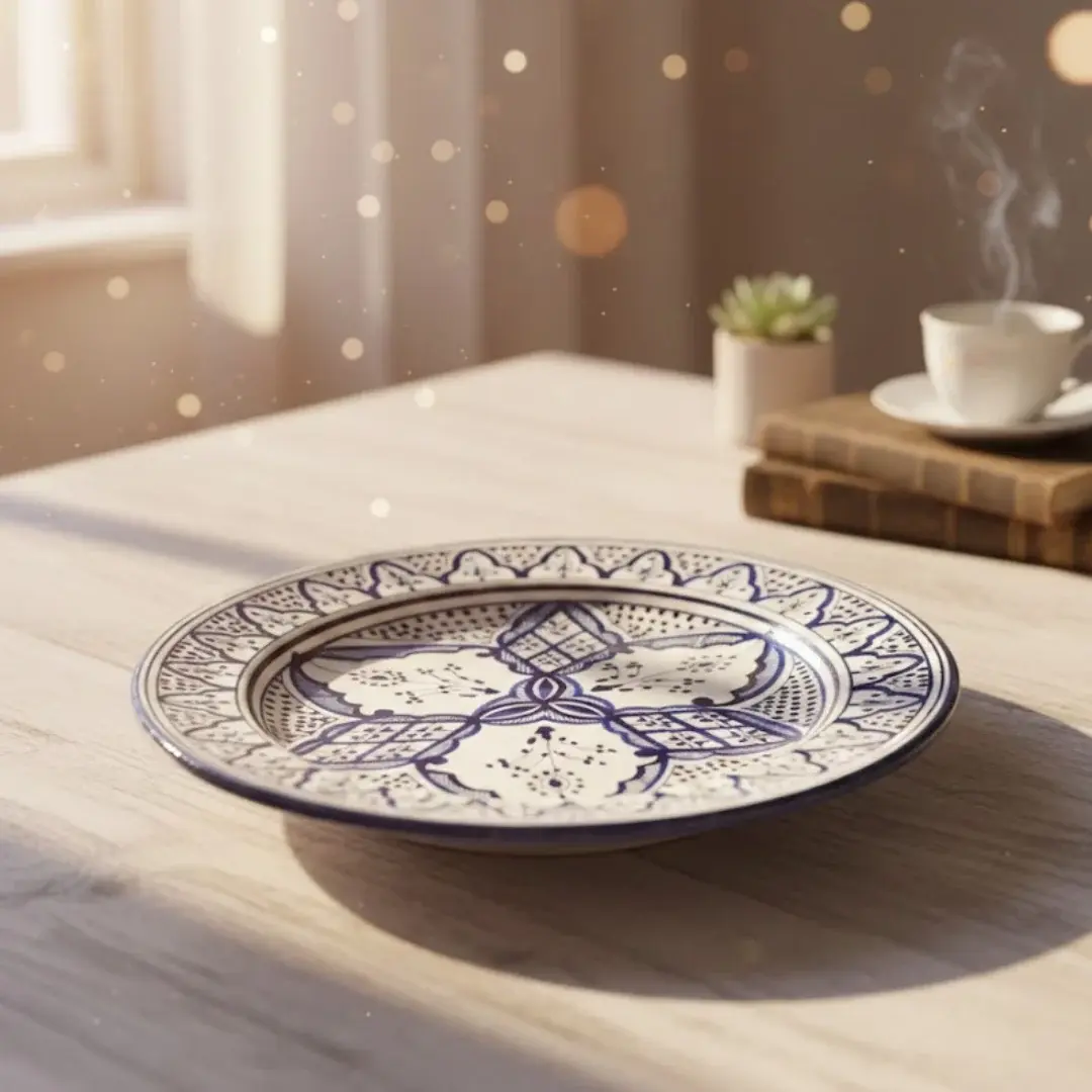 زخارف يدوية تقليدية تعكس التراث المغربي العريق بأسلوب فتيري فني.