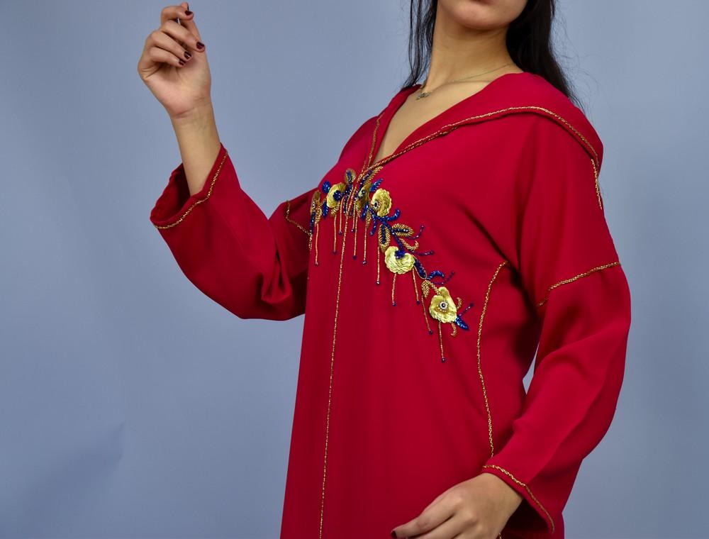 كوني مميزة بجمالية اللون الأحمر وتألق التطريز الفاخر! طلبيها دابا وخلي الجمال يكون جزء من أسلوبك