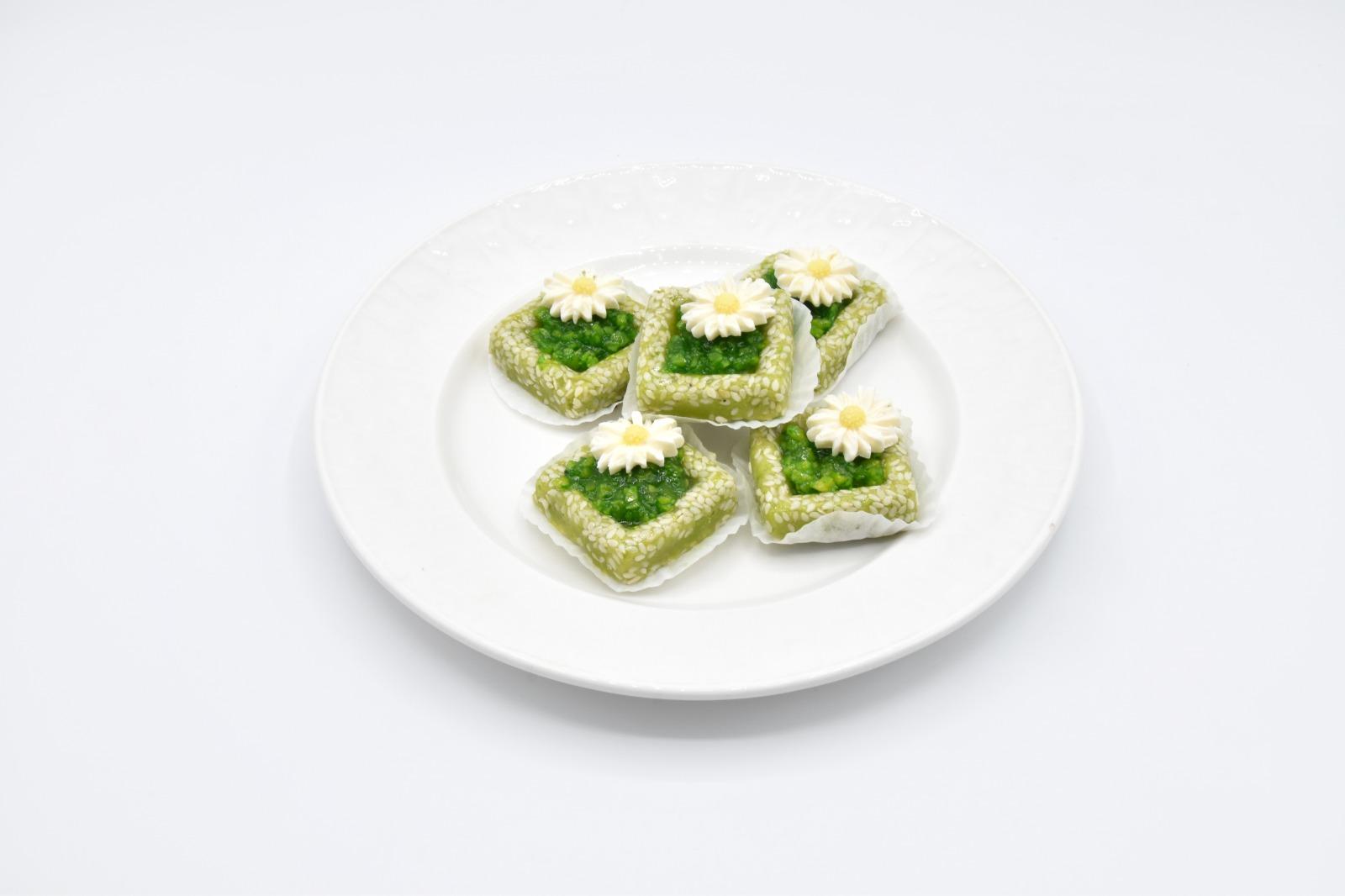 حلوة غنية باللوز والزبدة، محلاة بالسنيدة ومنسّمة بنكهة البيسطاج… مذاق راقي كيدوب فالفم.