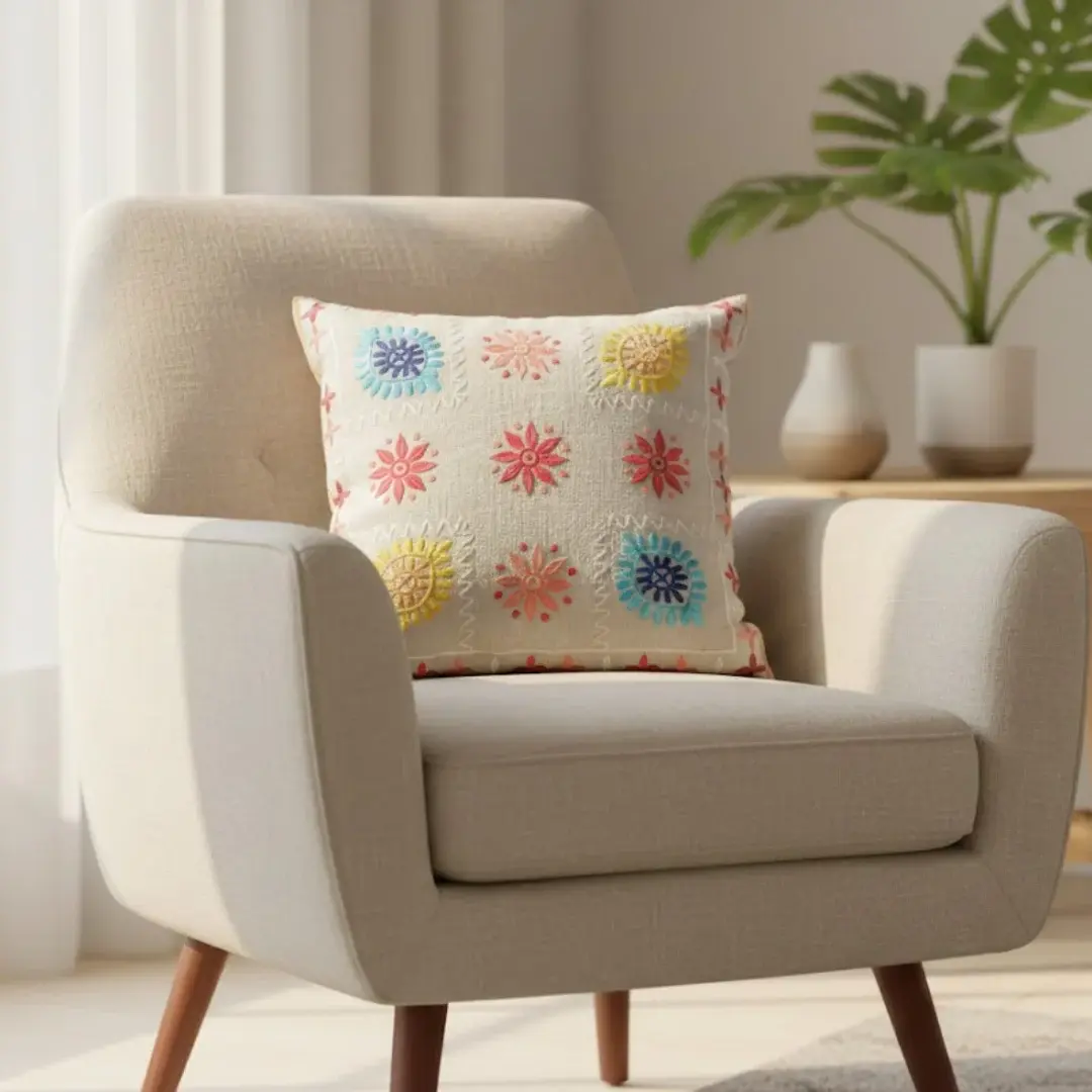 بغيتي تزيد شي لمسة د "الهمة" للصالون ديالك بلا ما تبدلي الفراش كامل؟ هاد المخاد (Coussins) بالطرز الرباطي الحر هما الحل! 😍 مخدومين باليد، "غرزة ونخوة"، بألوان زاهية ورشمات د الورود اللي كترد الروح للمكان. تحفة فنية كتواتا مع الصالون البلدي وحتى مع السيجور العصري.