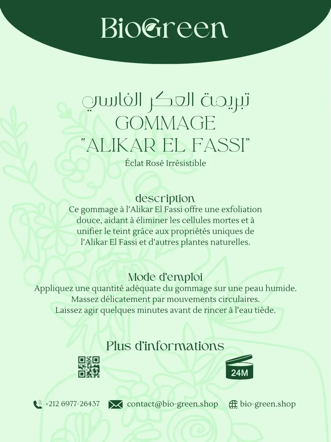 ✨ تفتيح ونضارة: بفضل غناه بمضادات الأكسدة، يساعد العكر الفاسي على تفتيح البشرة، توحيد لونها، ومحاربة التصبغات، مما يمنحك صفاءً لا مثيل له.